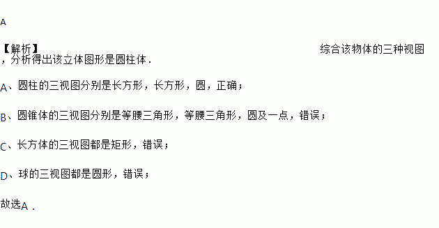 A. 圆柱 B. 圆锥 C. 长方体 D. 球