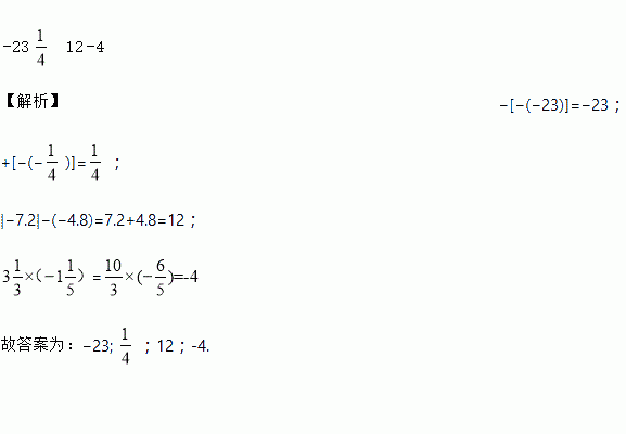 计算:﹣[﹣(﹣23)]=_____; =_____;|﹣7.2|﹣(﹣4.8)=_____; =_____.