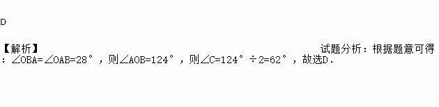 A. 28° B. 56° C. 60° D. 62°