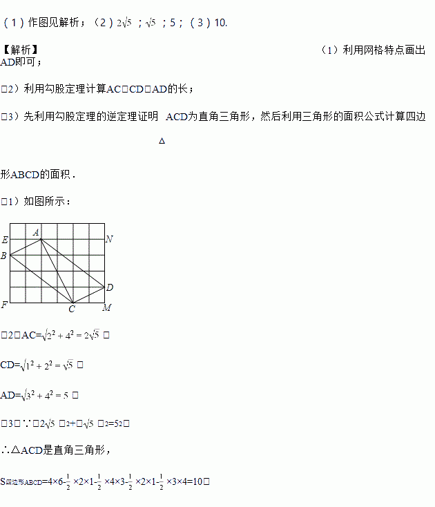 (1)画线段AD∥BC且使AD=BC,连接CD;