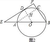 分析 (1)如图1,连接OD,BD,由EF与⊙O相切,得到OD⊥EF,由于BF⊥EF,得到OD∥BF,得到∠AOD=∠B=50°,由外角的性质得到结果;