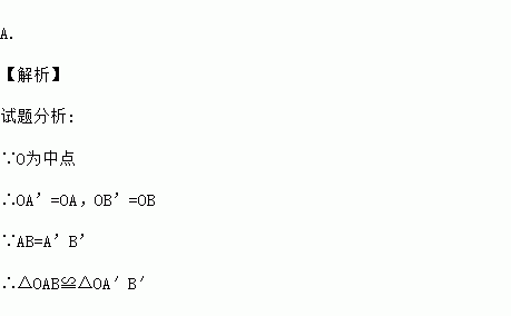 A. 【解析】 试题分析: ∵O为中点 ∴OA’=OA,OB’=OB ∵AB=A’B’ ∴△OAB≌△OA′B′