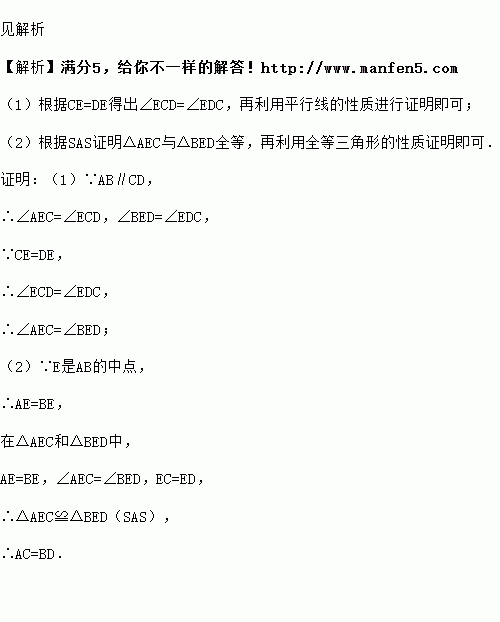 已知:如图,AB∥CD,E是AB的中点,CE=DE.求证: