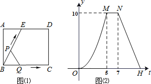 分析:据图(2)可以判断三角形的面积变化分为三段,可以判断出当点P到达点E时点Q到达点C,从而得到BC、BE的长度,再根据M、N是从5秒到7秒,可得ED的长度,然后表示出AE的长度,根据勾股定理求出AB的长度,然后针对各小题分析解答即可.