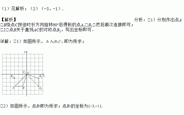 (2)画出点B关于直线AC的对称点B2,并写出点B2的坐标.