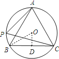 分析:过O点作OD⊥BC于D,连结OB,则OB=4,根据垂径定理得到BD=CD,由圆周角定理得∠ABC=∠APC=60°,而∠BAC=60°,则可判断△ABC为等边三角形,根据等边三角形的性质得