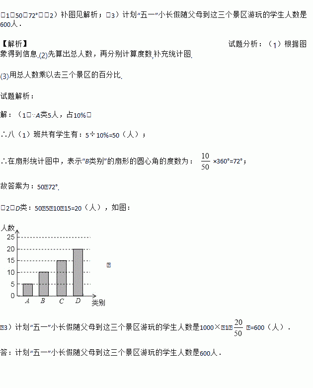 ijÊÐÓÐÈý¸ö¾°ÇøÊÇÈËÃǽڼÙÈÕÓÎÍæµÄÈÈµã¾°Çø£¬Ä³Ñ§Ð£¶ÔÆß£¨1£©°àѧÉú¡°ÎåÒ»¡±Ð¡³¤¼ÙËæ¸¸Ä¸µ½ÕâÈý¸ö¾°ÇøÓÎÍæµÄ¼Æ»®×öÁËÈ«Ãæµ÷²é£¬µ÷²é·ÖËĸöÀà±ð£¬A£ºÈý¸ö¾°Çø£»B£ºÓÎÁ½¸ö¾°Çø£»C£ºÓÎÒ»¸ö¾°Çø£»D£º²»µ½ÕâÈý¸ö¾°ÇøÓÎÍæ£¬ÏÖ¸ù¾Ýµ÷²é½á¹û»æÖÆÁËÈçϲ»ÍêÈ«µÄÌõÐÎͳ¼ÆÍ¼ºÍÉÈÐÎͳ¼ÆÍ¼£¬Çë½áºÏͼÖÐÐÅÏ¢½â´ðÏÂÁÐÎÊÌ⣺