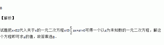 若x=-2 是关于x的一元二次方程x2-ax+a2=0的一个根,则A的值为( )