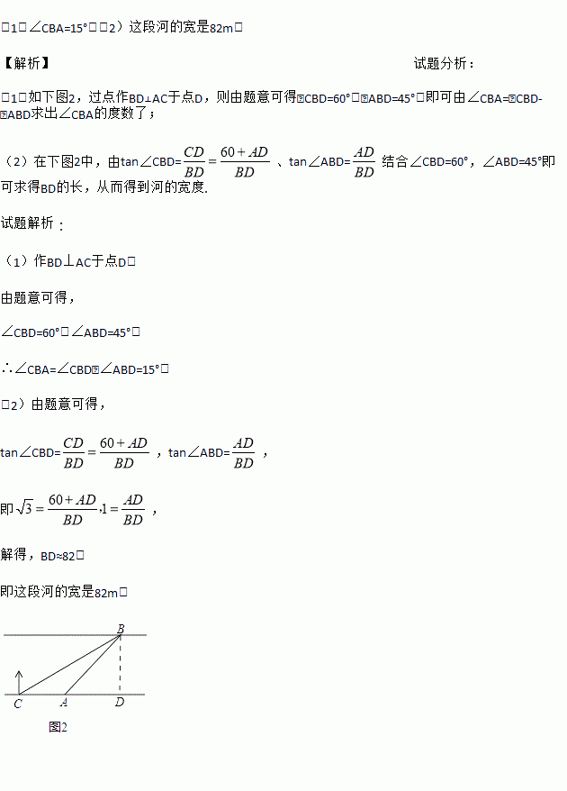 (2)求出这段河的宽.(结果精确到1m,备用数据