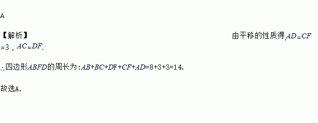 将△ABC沿BC方向平移3个单位得△DEF.若 △ABC的周长等于8,则四边形ABFD的周长为( )