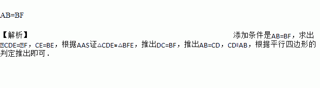 如图,在四边形ABCD中,E是BC边的中点,连接DE并延长,交AB的延长线于F点,CD∥AF,请你添加一个条件:_________使四边形ABCD是平行四边形