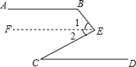 分析:过点E作EF∥AB,由平行线的性质可知,AB∥CD∥EF,故可得∠B+∠1=180°,∠2=∠C,由此即可得出结论.