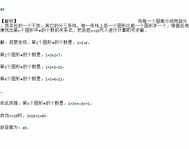 观察下列图形,它们是按一定规律排列的,依照此规律,第16个图形共有____个★.