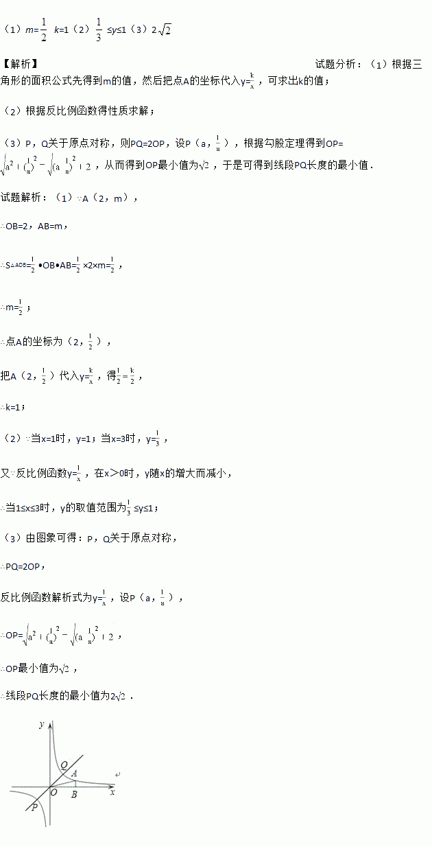 (k>0)的图象经过点A(2,m),过点A作AB⊥x轴于点B,且△AOB的面积为