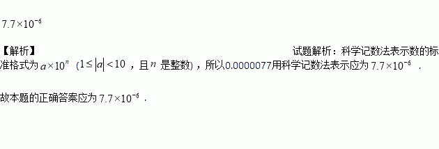 人体中红细胞的直径大约为0.000 007 7米,则数据0.000 007 7用科学记数法