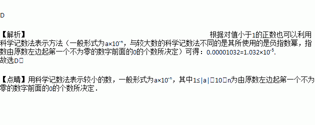 用科学记数法表示0.00001032,下列正确的是( )