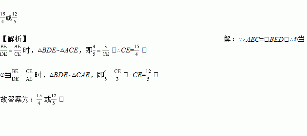 如图,点D为△ABC外一点,AD与BC边的交点为E,AE=3,DE=5,BE=4,要使△BDE与△ACE相似,那么线段CE的长等于___________.