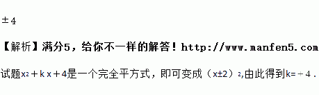 x2+kx+4可分解成一个完全平方式,则实数k=_____;