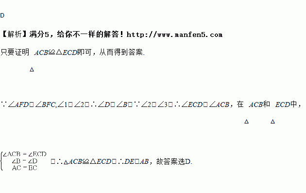 如图所示,点A在DE上,点F在AB上,且AC=CE,∠1=∠2=∠3,则DE的长等于( )