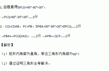 已知:如图,四边形ABCD是矩形,△PBC和△QCD都是等边三角形,且点P在矩形上方,点Q在矩形内.