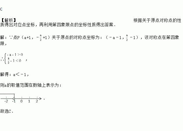 已知点P(a+1,﹣ +1)关于原点的对称点在第四象限,则a的取值范围在数轴上表示正确的是( )