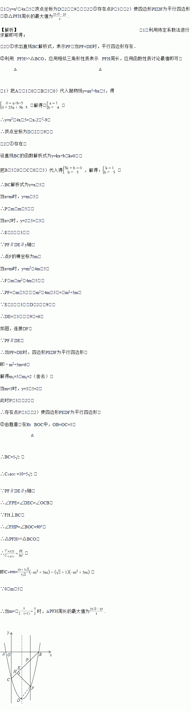 ②过点F作FH⊥BC于点H,求△PFH周长的最大值.