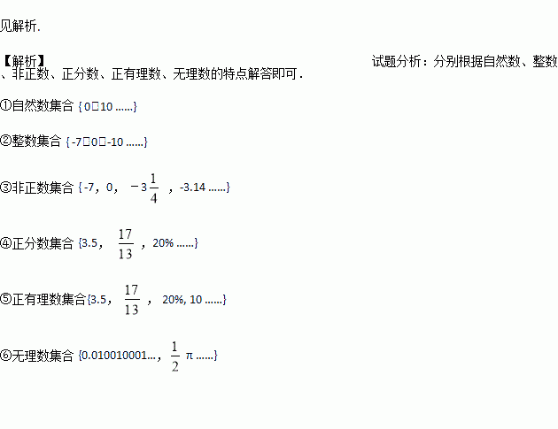 把下列各数填在相应的括号内:‐7,3.5,3.14,0,