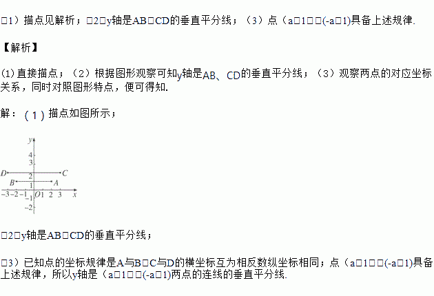 (1)在直角坐标系中描出下列各点A(2,1),B(-2,1),C(3,2),D(-3,2);