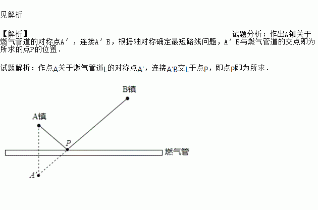 要在燃气管道L上修建一个泵站P,分别向A,B两镇供气,泵站修在管道的什么地方,可使所用的输气管线最短?在图上画出P点位置,不写作法,保留痕迹.