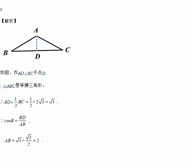 等腰三角形的底角为,底边长为,则腰长为__________.