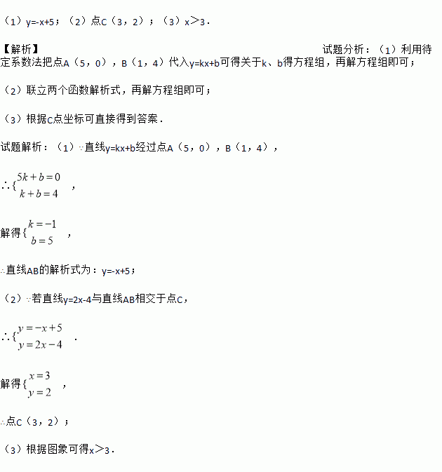 已知直线y=kx+b经过点A(5,0),B(1,4).