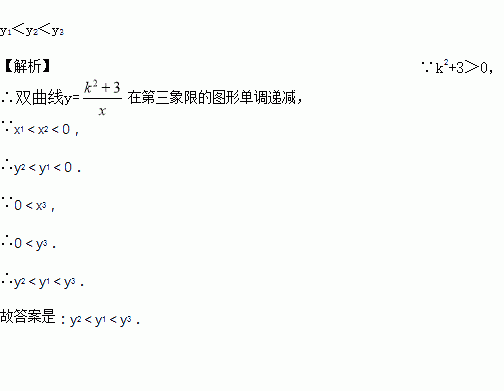 在双曲线上有三点,已知,则的大小关系是_______________________. (用“<”连接)