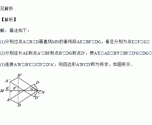 如图所示的是四边形ABCD与直线MN,点C在直线MN上,请你画出与四边形ABCD关于直线MN成轴对称的四边形A′B′CD′,并说出你的画法.