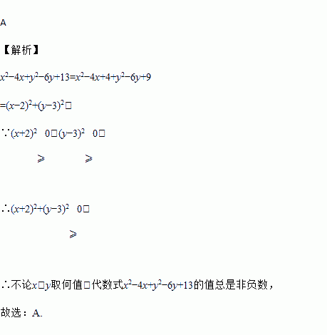 不论x,y取何实数,代数式x2-4x+y2-6y+13总是( )