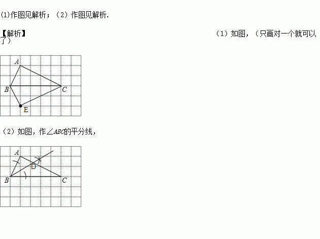 (1)在网格中△ABC的下方,直接画出一个△EBC,使△EBC与△ABC全等.