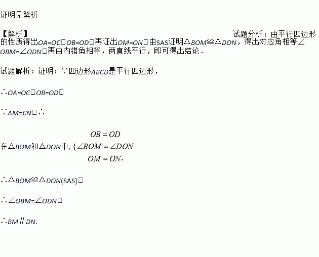 如图,在?ABCD中,对角线AC与BD相交于点O,点M,N在对角线AC上,且AM=CN,求证:BM∥DN.