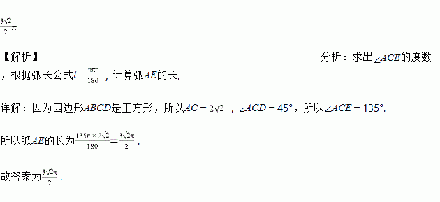 如图,在正方形ABCD中,AB=2,连接AC,以点C为圆心、AC长为半径画弧,与BC的延长线交于点E,则图中弧AE的长为_____.