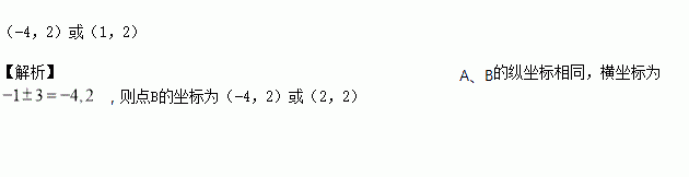 已知线段AB//x轴,且AB=3,若点A的坐标为(-1,2),则点B的坐标为_______;