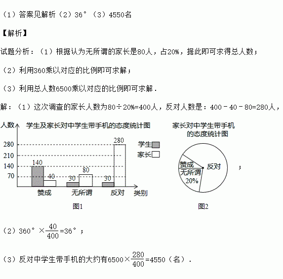 (3)已知某地区共6500名家长,估计其中反对中学生带手机的大约有多少名家长?