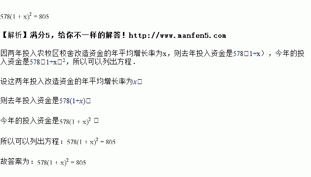 我市前年的投入资金是万元用于校舍改造,今年投入资金是万元.若设这两年投入改造资金的年平均增长率为,则根据题意可列方程为________.