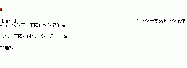 如果水位升高5m时水位记作+5m,水位不升不降时水位记作0m,那么水位下降3m时水位变化记作( )