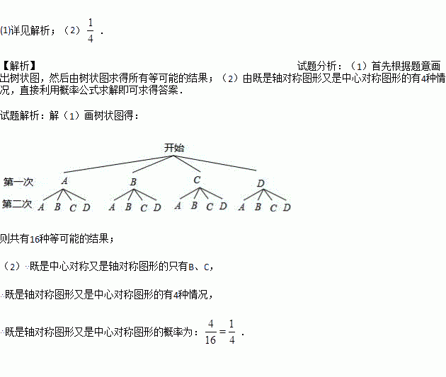 (1)用树状图(或列表法)表示两次摸牌所有可能出现的结果(纸牌可用A、B、C、D表示);