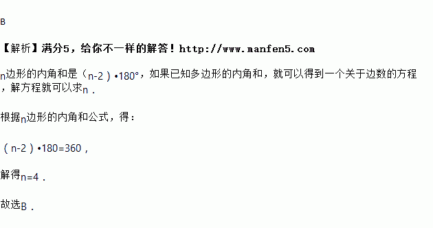 一个n边形的内角和为360°,则n等于( )