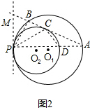 分析:(1)欲证PC平分∠BPD,即证∠BPC=∠CPD,可以过点P作两圆的公切线PM交AC于点M,根据切线的性质得出∠BPM=∠A,∠MPC=∠C,再通过角与角相互间的关系得出;
