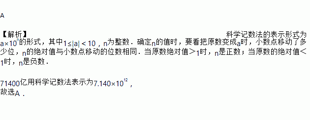 广东省进出口总额在“十二五”末达到71400亿元,将数据71400亿用科学记数法表示为( )