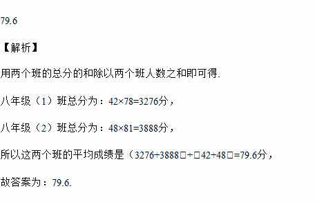 在一次数学知识与能力测试中,八年级(1)班42人的平均成绩是78分,八年级(2)班48人的平均成绩是81分,那么八年级这两个班的平均成绩是____分.