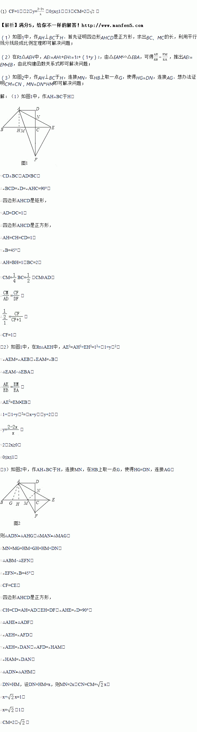 (2)设CM=x,CE=y,求y关于x的函数关系式,并写出定义域.