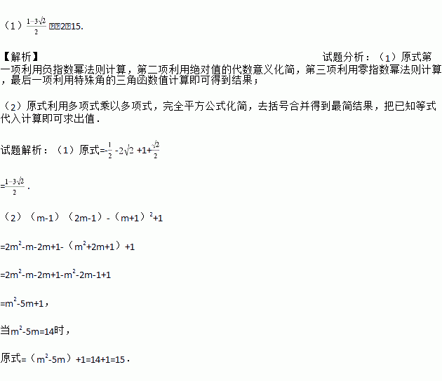 (2)已知m2﹣5m﹣14=0,求(m﹣1)(2m﹣1)﹣(m+1)2+1的值.