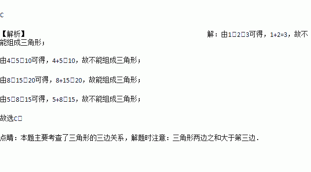 下列长度的三条线段能组成三角形的是( )