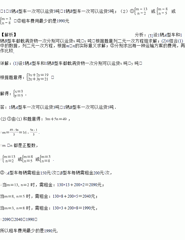 (1)1辆A型车和1辆B型车都载满货物一次分别可以运货多少吨?